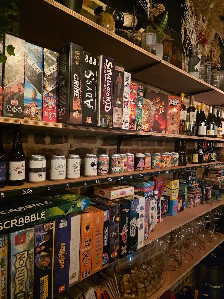 Large sélection de vins, bières et jeux de société